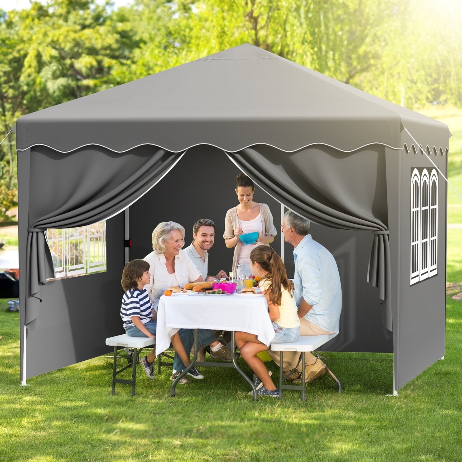 - GARTIO10ft canopy tent is made of 420D Oxford, which is stronger and more durable. There is also a silver-coated PU layer on the inside of top cloth to effectively block sunlight.