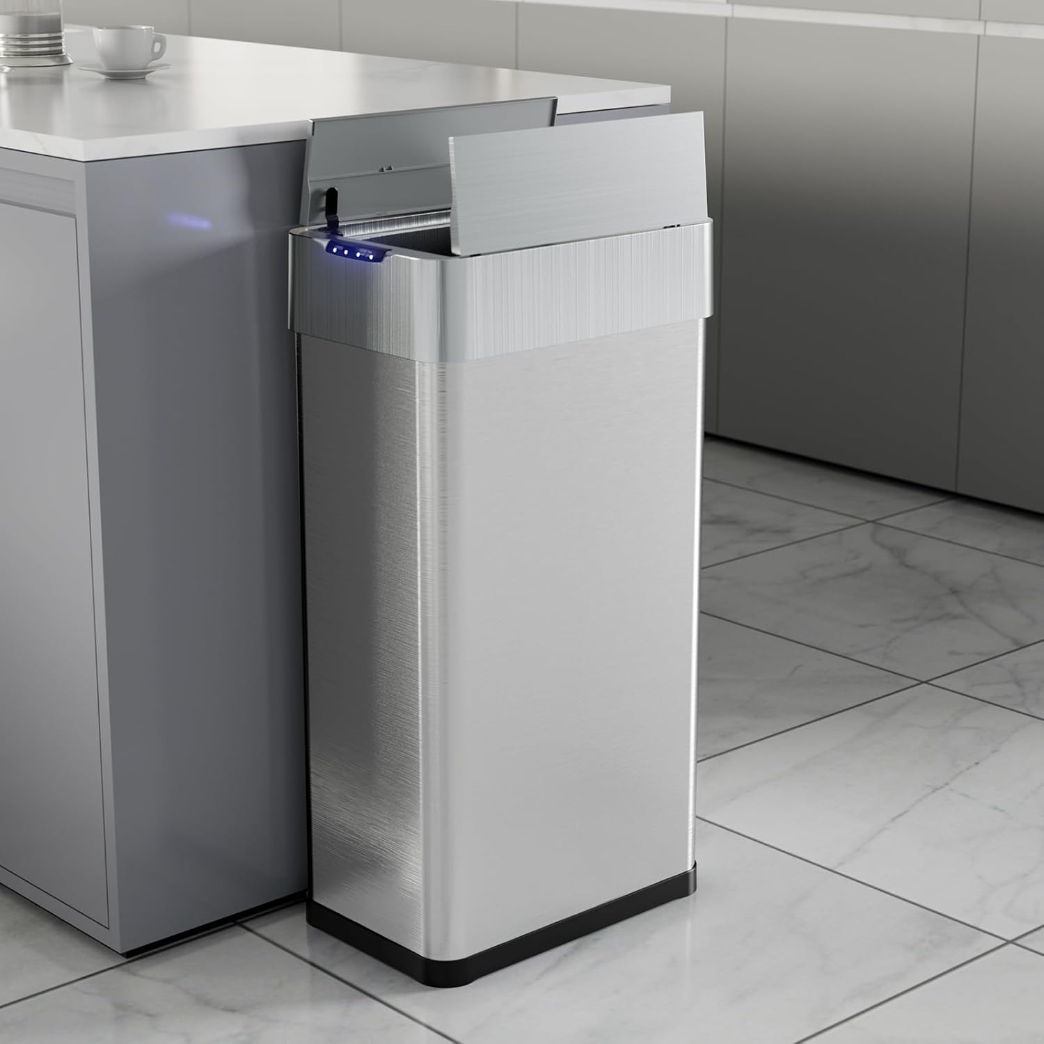 LAZY BUDDY 50 Liter / 13.2 Gallon Automatic Trash Can, Stainless Steel Motion Sensor Garbage Can with Lid, for Living Room, Kitchen, Office