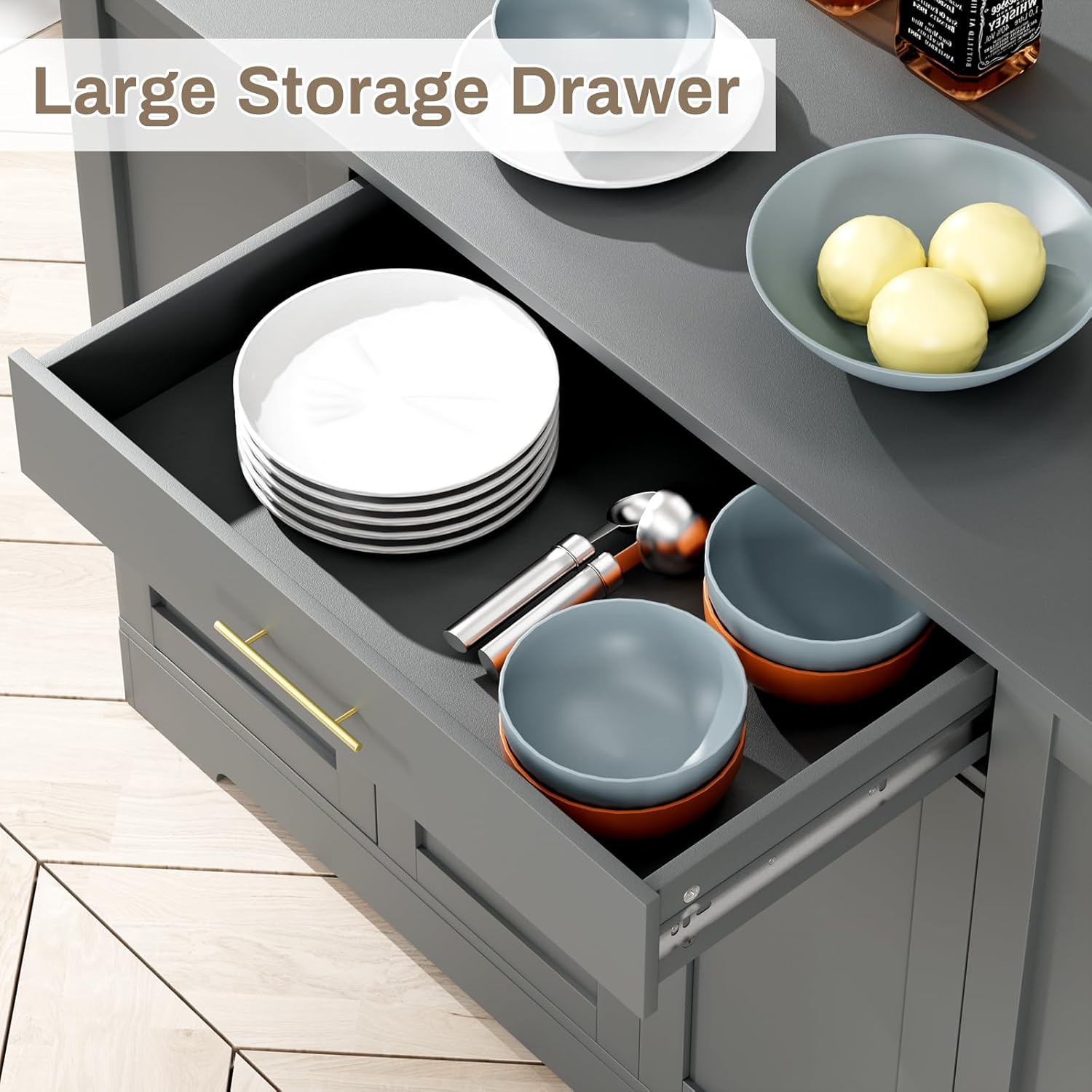 - 【Space-Saving Elegance】Large kitchen island built-in double-door cabinet with rack and a large drawer features an open 3 racks designed for easy access, enhancing kitchen efficiency with its durable, minimalist style. Includes a full installation kit for quick setup.
