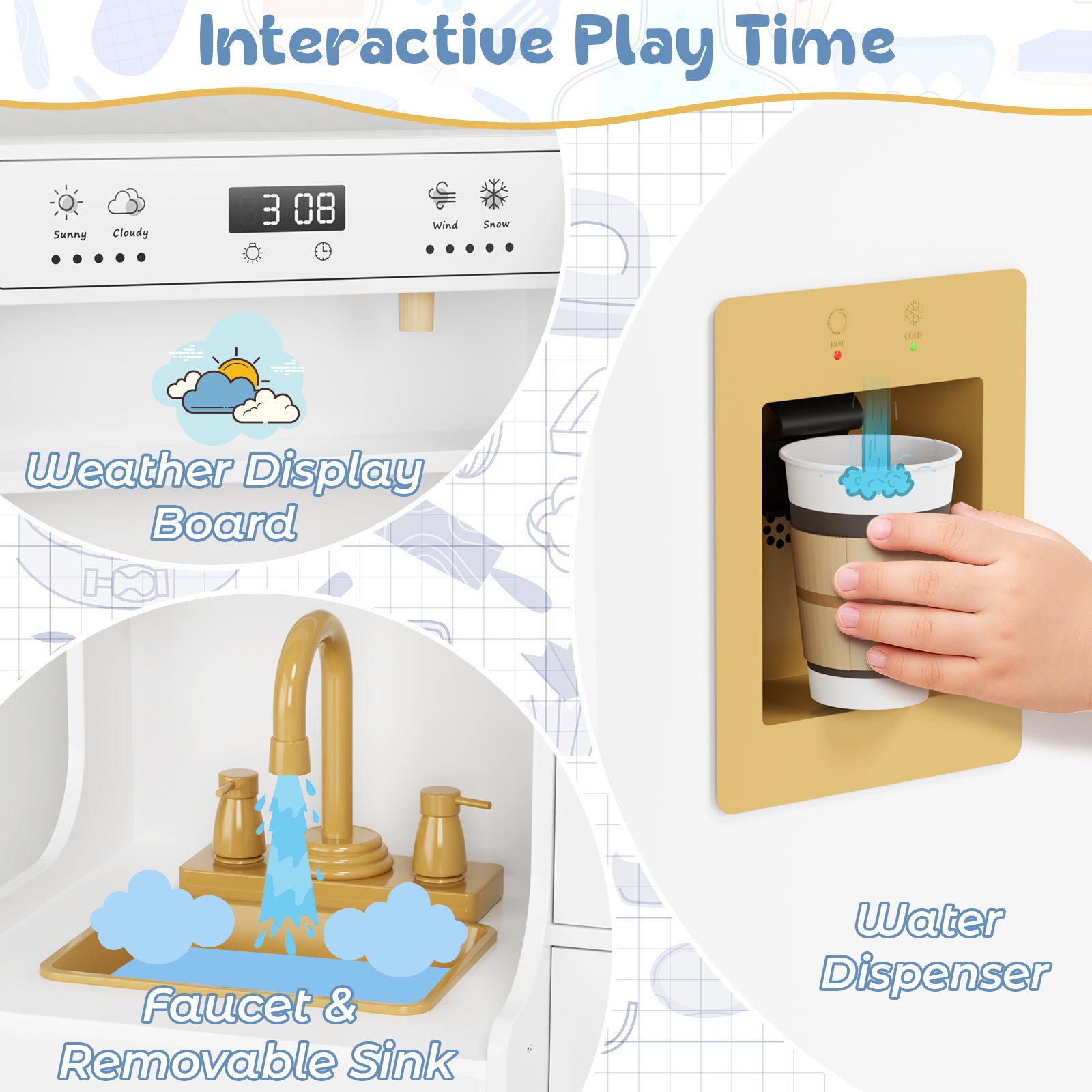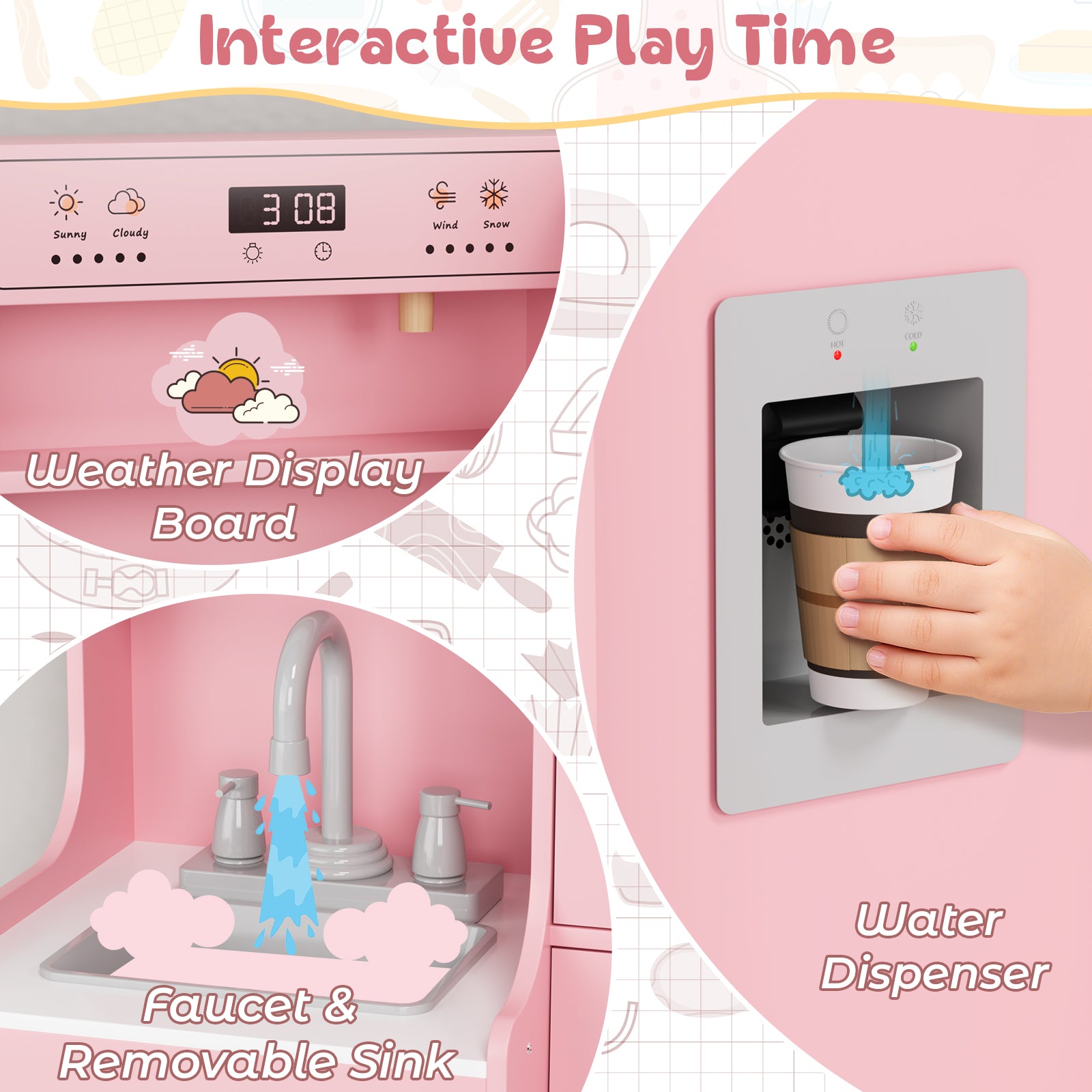 LAZY BUDDY Kids Kitchen Playset, Interactive Toy with Lights and Sounds, Toddlers Wooden Kitchen Playset with 5 Accessories