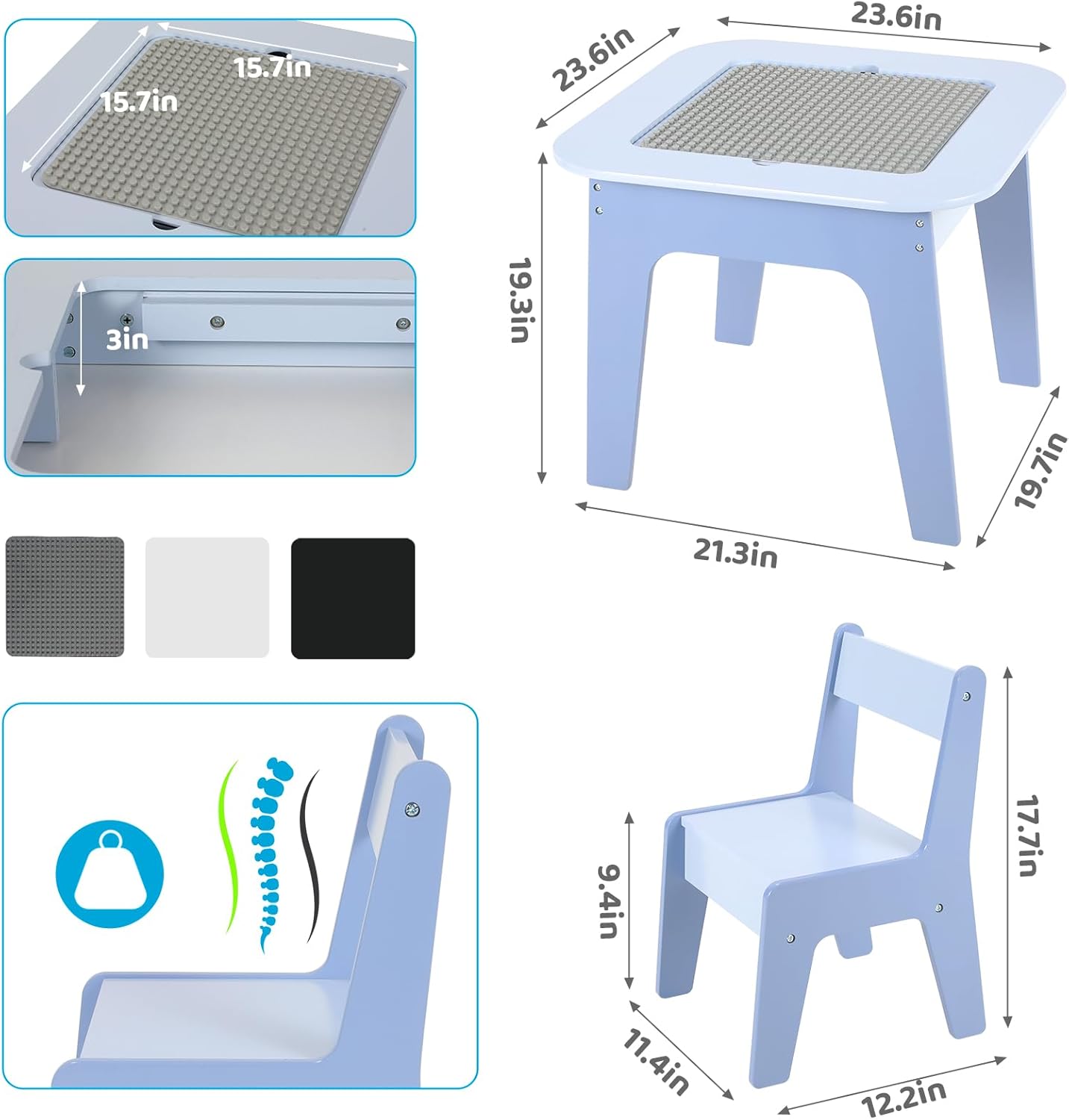 - LAZY BUDDY multifunctional kids table and chairs set combines a building table, chalkboard, whiteboard, and a normal kids' table with storage, catering to a variety of play and learning scenarios.