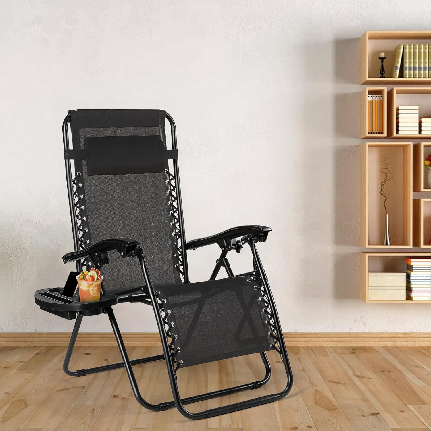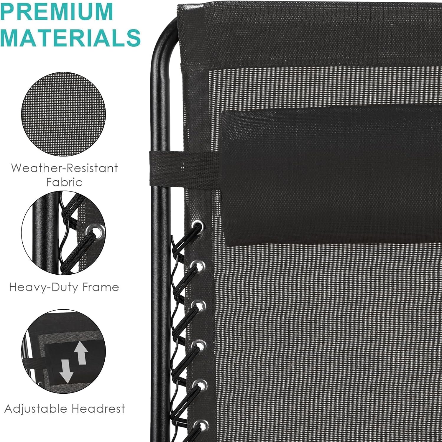 LAZY BUDDY Zero Gravity Chair Set of 2, Outdoor Folding Lounge with Detachable Headrest & Holder Tray, Adjustable Textilene Lawn Reclining, No Assembly Required, for Patio, Backyard, Garden, 330LBS